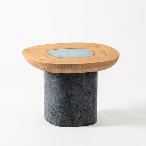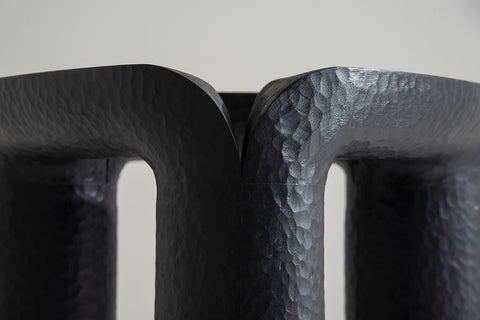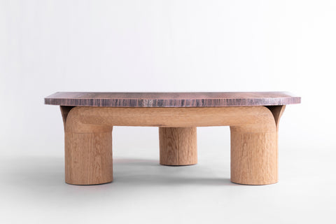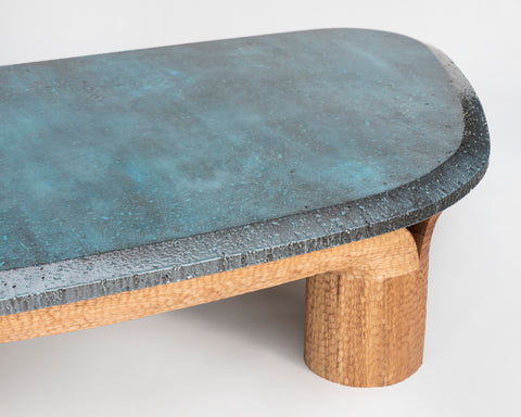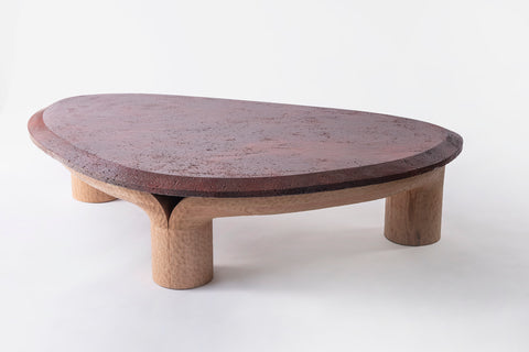 Following his inaugural show at Sight Unseen displaying a prototype, we worked with Ian Felton to refine the fabrication method of his Mullu coffee table. We crafted the finished piece as shown in hand-formed copper finished with a unique automotive finish.