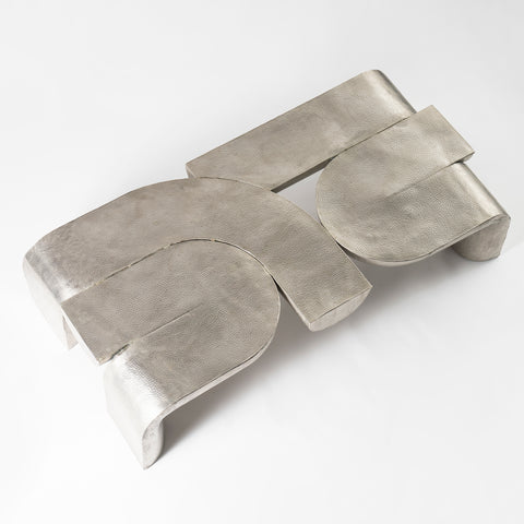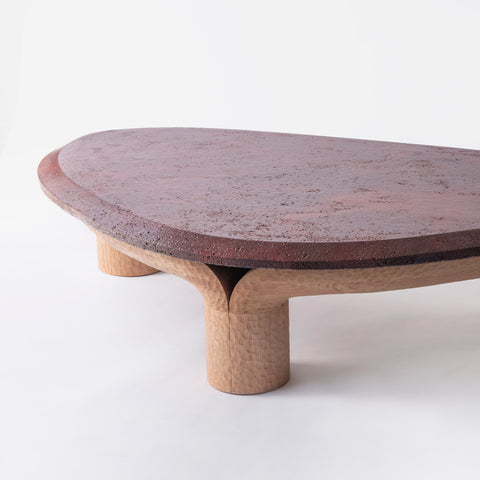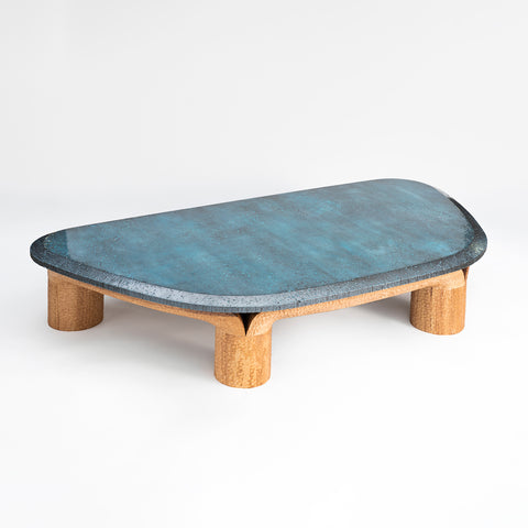 Following his inaugural show at Sight Unseen displaying a prototype, we worked with Ian Felton to refine the fabrication method of his Mullu coffee table. We crafted the finished piece as shown in hand-formed copper finished with a unique automotive finish.